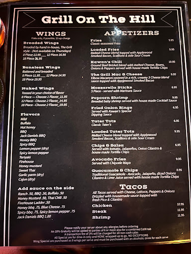 Great food. Drinks are not that expensive. Staff are nice and ready to help. David, Roxy, Arthur and McKenzie make it so nice to go to Grill on the Hill. We love this pub