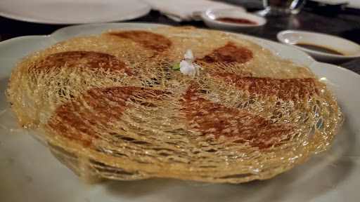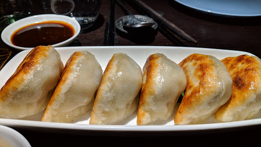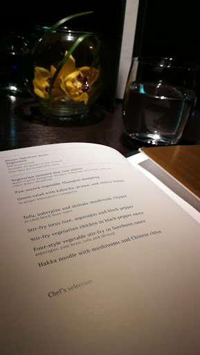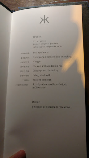 Went for dim sum and enjoyed a culinary experience. My favorite dish was the Roast duck pumpkin puff. I wouldnt even have ordered it had I realized that it was deep fried, but would have missed a real treat. It was hearty and full flavored but with a delicate appeal. The pan-seared Shanghai dumplings were merely very good. Id have swooned had we not started with the puffs. The Prawn and pak choi dumpling was a thing of beauty, a lovely shade of green pak choi complementing the off-white wrapper, and the taste did not disappoint. The Shanghai siew long bun is a soup dumpling, and these were good examples of the genre. Four dishes were plenty for two of us. If I go back by myself I will try the prix fixe menu, but with than one person Ill stick with the dim sum. Its a fancy place with nice decor and huge, not at all crowded for a weekday lunch. Id be curious to know what its like on a weekend. New Yorkers are used to paying a lot less for dim sum, but everything about the experience made it worthwhile.