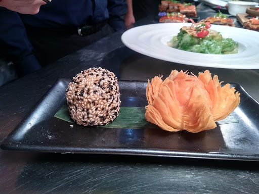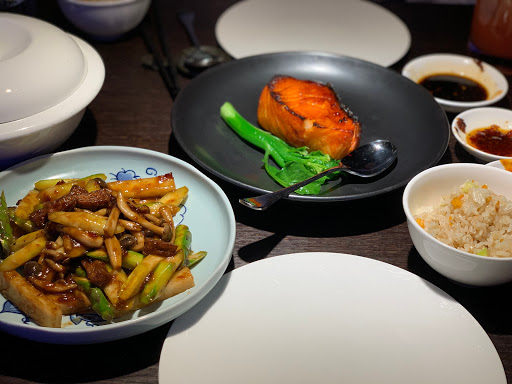 My friend and I came here during restaurant week and thank goodness for that because this place was expensive. Its really gorgeous inside and the staff were very friendly and accomodating. I had the fried dim sum platter and they were really tasty with the exception of the scallops. I dont eat seafood so I was shocked and pleasantly surprised that I enjoyed the shrimp dumpling that didnt have that seafoodish taste that I cant stand. I had the sanpei chicken in a clay pot and it was delicious with the egg fried rice. I literally ate everything off my plate and was disappointed I didnt have any more food to eat. The portions were soo small. For dessert, I had the chocolate gianduga ganche that was absolutely delicious but I had to eat that badboy real slow because thats how tiny it was. LOL. I would love to visit this place again when I have the funds to enjoy a whole meal because they teased us with the food since we paid a discount rate for restaurant week.