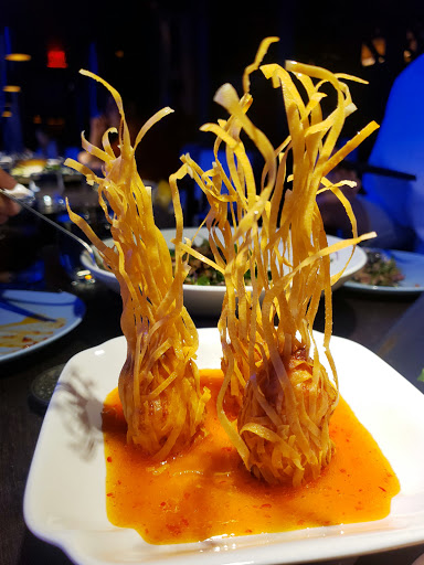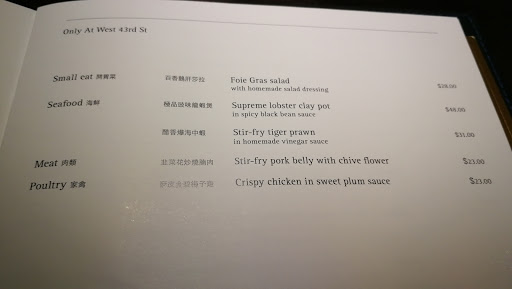 wow wow wow is all I can say. this place is reminiscent of Tao or Buddakan and yes it is just as expensive if not more!! from outside you cannot so this is a restaurant that is why there is bodyguard outside with a long rope which makes it look like a underground club. go downstairs to the long long but very gorgeous hallway and check in with your reservationist and we were seated promptly. of course its restaurant week which is why we came we would never be able to afford this without it. Service was quick and impeccable and the servers were very attentive and very knowledgeable about the menu and cuisine. for appetizers I got the crispy dim sum and he got the steamed dim sum which were fantastic. it came with three different sauces soy sauce spicy sauce and sweet tangy sauce. we then went on to the entrées. we both got the stir fry black pepper ribe eye entrees which came with greebs which were fantastic and rice and eggs. I found the dish mediocre. Good thing it was resturaunt week because i would have been pissed off because of the price. Would i be back? Only if i turn into a millionaire or someone treats me lol