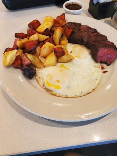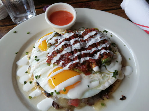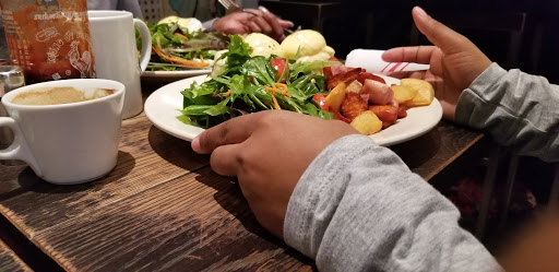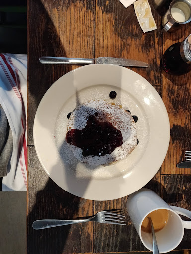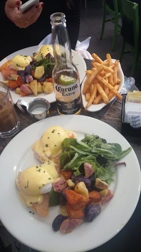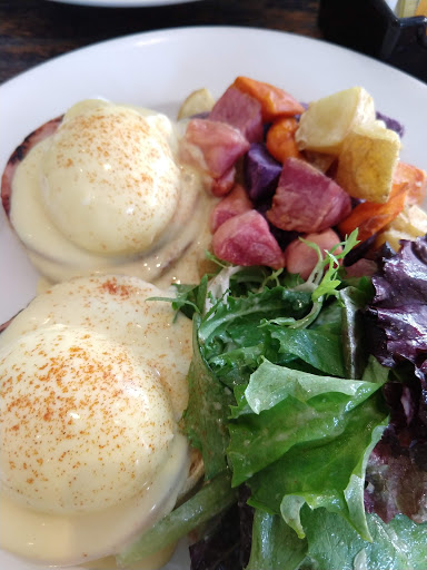 Looked like a nice spot, so wee tried it for brunch. Went from good to bad. Nice atmosphere, and the menu looked good. The lemon blueberry pancakes were great, but my wifes Eggs Benedict came well undercooked, when she asked for medium. Waitress immediately took them away and said shed have then redone. Great, however, 10 minutes later, still no eggs, and I was finished my pancakes. Not once did anyone come by to refill our waters or coffees, which had been finished before the pancakes even arrived. 3 staff behind the bar seemed content on chatting, and ignoring everyone else, while one waitress did all the running. At this point we asked for the cheque, still no eggs, and the waitress had the audacity to tell us that she went ahead and took the eggs off the bill. Well, I would hope so, since we never got the dam eggs!