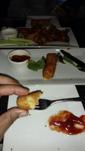 Waiter was friendly and always available even though the place was packed. Only negative was that I ordered wings plain without the spicy sauce and they still messed it up. The Mac and cheese sticks are amazing!!