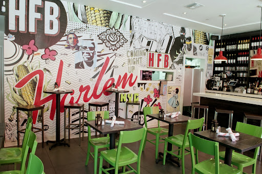 In recent years Harlem has become home to some of New York City’s best restaurants. I recently had a chance to visit Harlem Food Bar on the upper west side. The graphic art painted walls and small stools are cute and trendy. The waitress and bartender staff were refreshing and very friendly. I went to take advantage of the happy hour special and much to my surprise, the only drink special was buy one get one free. I was on my own and only wanted one drink (It was a work night). I wasn’t really in the mood to drink at a high price, so I opted for a diet coke instead (other patrons raved about the drinks). I ordered the buffalo wings and fries, which were delicious! Both were original recipes and I was impressed. HFB made a simple bar meal taste gourmet. Since I was the only person drinking a non-alcoholic beverage, I was granted numerous refills. Although the seating was small and cute, I found it to be a little tight. The owners make up for this by having a coat rack and hooks for handbags and briefcases under the bar. There was also outlets to charge phones and devices. One of my biggest surprises was that there is no Wi-Fi offered at the restaurant. Wi-Fi has become a huge complimentary offering among many NYC restaurants. As a warning to single New Yorkers, you may want to take someone with you to the tiny restaurant. As a single girl passing through solo, I noticed couples and groups dominate the crowd. Many of them frequent the restaurant. Overall I give Harlem Food Bar a 3 out of 4 stars. It has a few flaws, but HFB is the perfect spot for an after work drink or a casual date. Harlem Food Bar is located at 2100 Frederick Douglas Blvd (near 113 and Central Park West
