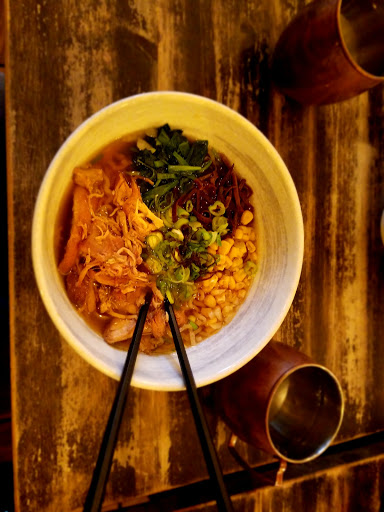 Chicken option for non pork eaters, vegan option for the veggies. The spicy ramen is outrageously delicious. Decently priced. Everyone go here so they stay open k thanks