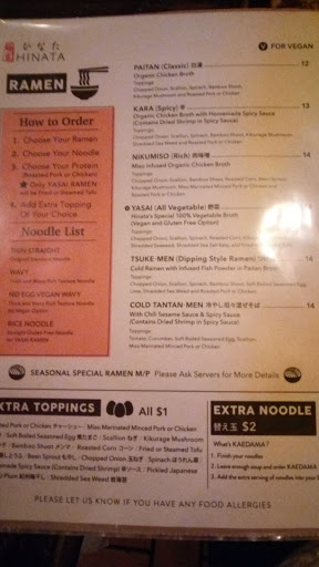 This is a fairly new ramen place that opened one block from my work. Their ramen is chicken broth based and they also have vegetarian ramen. I had a bowl of the chicken paitan. I did like that they ask you if you want straight or wavy noodles. It was a decent bowl of ramen, a bit bland though. Its probably healthier than other ramen places.