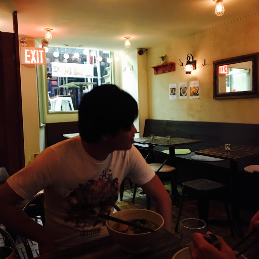 Really enjoyed my experience here. I got the spicy garlic ramen, which was $15. I went on a Tuesday at around 8:15, and there was no line with ample seating. Pros: The broth was very flavorful and I could really taste the garlic, which was exactly what I wanted. The pork chase was also very tender and succulent. The best part about the meal was that the noodles were absolute prime. I like it firmer, and boy did they deliver. Cons: The amount of noodles was small. There was an ample portion broth, but I found myself forcing myself to down the broth just so I can continue eating my noodles. Overall, great place, but the small noodle amount means its not the best value.