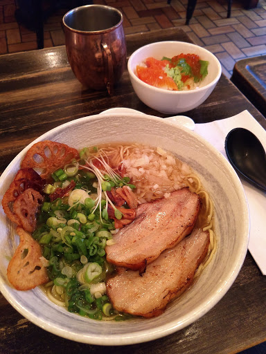 This place is ok. Ive had much better. Broth and noodles werent the issue. Pork could have been more tender and more flavorful. Soft boiled egg was spot on. Salmon was middling quality and salmon roe could have been fresher. Rice was mediocre.
