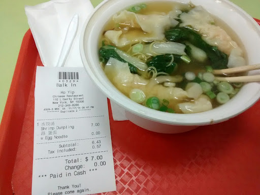 Visited New York City with my family of five and decided to visit the Financial District. Finding Ho Yip was like finding a diamond in the rough. As a family we were trying to keep our expenses our low, while still trying to enjoy everything the big city had to offer. Ho Yip was a restaurant that spacious, very clean and served up some pretty good food with a great price point. My family are heavy eaters and we got 5 entrees with appetizers and drinks for around 32 dollars. I would reccomend this to anyone in the Financial District area hoping to get some fresh chinese food and living on a tight budget.