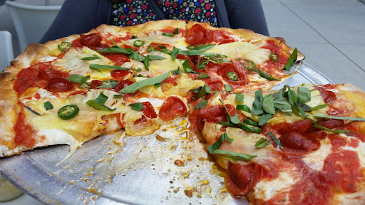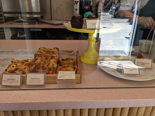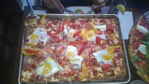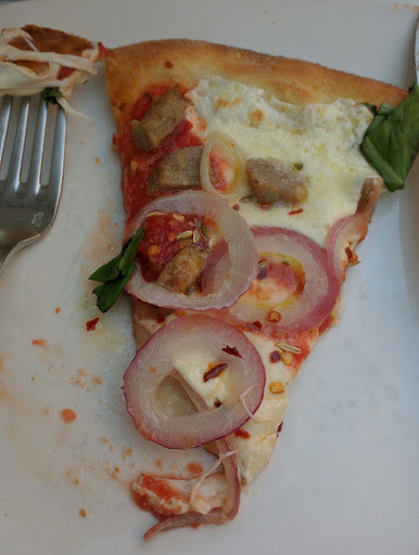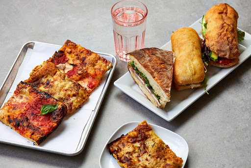 Very solid pizza! I work around the corner and we order from here regularly. The grilled chicken paillard ($16 at lunch) is incredible and easily enough to feed two. Its not a pizza buy the slice kind of place, but if you walk a block north to the cafe you can grab one there. The coffee isnt bad either!