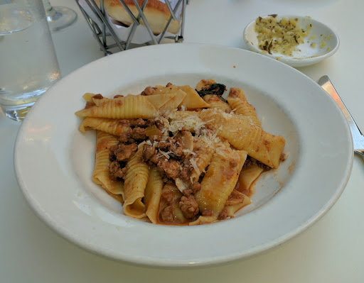 Yet another Italian restaurant that is lazy and mediocre in their cooking. Usually 7 out of 10 times going here it is good the other 3 it is a complete miss. I have to say I am very exhausted of Italian restaurants (especially ones run by Italians like this place) using heavy cream to dampen the acidity in their tomato based sauces. Unless it says vodka sauce your tomato based sauces should not look pink. This is a sign of laziness to not cook out the acidity of the tomatos and just throw in cream to soften the acidity of the sauce. Their coffee shop on the other end of the block is decent (for pastries but a lot of times their cupcakes are dry and way overpriced) but their espressos are always bitter and sour. Just because you have a create location with no competition you should have some pride in what you offer to the community in your food products.