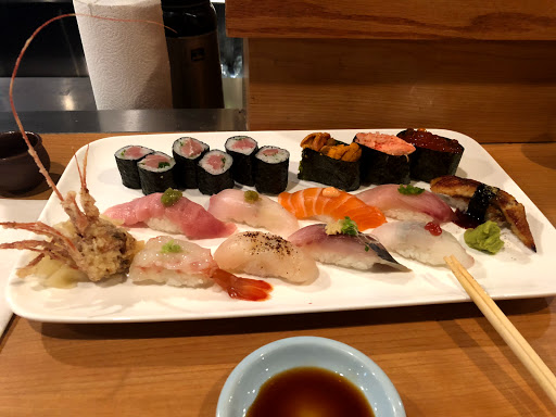 Got the sushi delight for $16 which came with: shrimp, unagi, salmon, tuna, hamachi Nigerien and 4 slices of tuna sashimi. The quality of the fish is above Ki taro next door but not as good compared to other restaurants with similar prices. However, the rest of their menu offers more traditional Japanese cuisine and that is something Ki taro doesnt have. I like the atmosphere and love that they use actual tea leaves in their tea.