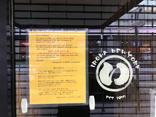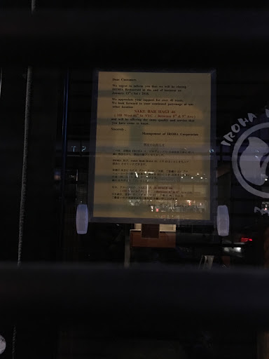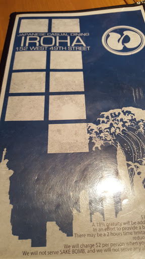 A no-frills sushi restaurant steps from Times Square, Iroha is a refreshing break from the chaos just outside its doors. The menu offers lots of variety and helpful pictures to illustrate each dish. The food is decent but not exceptional; sushi, gyoza, and accompaniments are standard. Omelets are giant and a fun option for adventurous eaters. Service is brisk and efficient. Decor is minimal but warm. One could certainly do worse in this neighborhood.