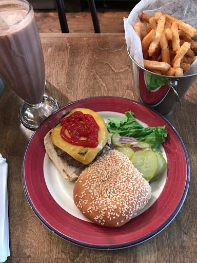Came here on a Friday night after visiting the Met. A party at the bar was leaving, and we sat down immediately. The bar area in the front sat the four of us comfortably. The menu of burgers are humongous. Plan to spend at least five minutes reading it and another ten minutes narrowing down what to get. (All the options are amazing.) I got a basic cheese burger and a chocolate shake. I shared an order of cheese/sloppy joe fries, but it was too big for the two of us. We shouldve shared between the four of us. (The shake was one of the best Ive had, but it filled me up so I barely ate my humongous burger.) Come hungry and leave really happy with leftovers!