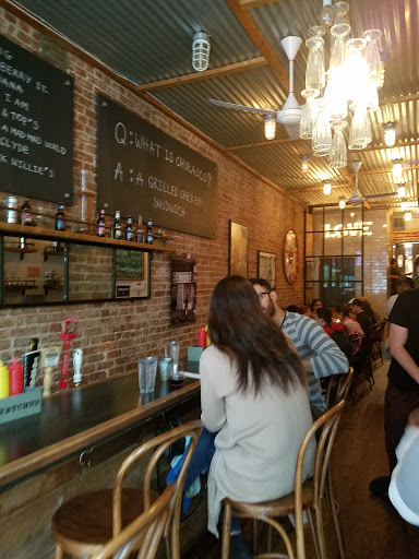 Interesting little burger joint. This place has a HUGE selection of different styles of burgers. Mine might have been too spicy but it was under the spicy section of the menu so I cant complain about that. The portions were huge and came out quick. I loved the huge portion of cheese fries I got. And I highly recommend having a shake for dessert. The strawberry milkshake was probably the best Ive ever had! Expect a wait or having to sit at the bar because the dining room is incredibly small.