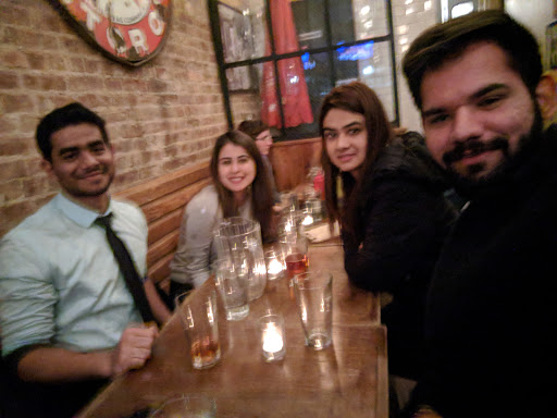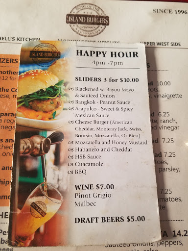It is a very nice place to eat in NY actually visited two consecutive days there instead. The first day we ordered hamburgers, meat the best we tasted, we consider it a bit expensive because it does not include french fries or salad and elsewhere for a price of about $ 16 per burger. The second day we ordered wings and Caesar salad, thoroughly recommended as beer, if you go Monday through Friday between 4-7 pm is happy hour beers