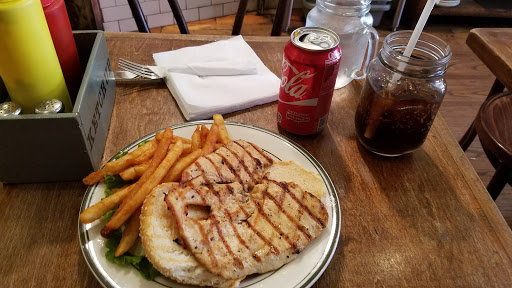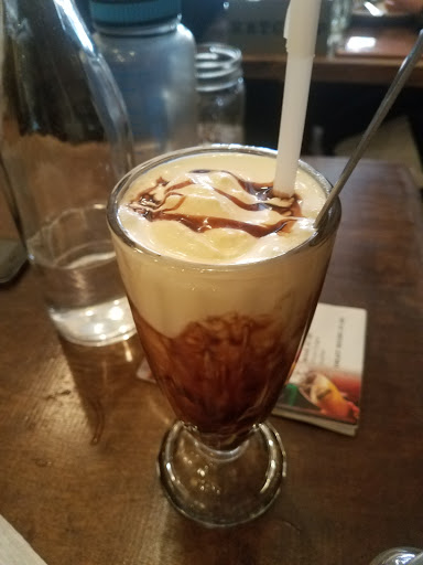 Went purely on review. Staff was excellent: very friendly. I went with my wife and 1-year-old; the staff was welcoming and easily accommodated our baby needs. I would say family friendly, but the collage of vinyl album covers (albeit very cool) has two covers with half naked women on them to which my daughter kept looking back. New waitress from Austin, TX was great and played with my daughter while we dined. Tried the black and white shake per review and staff recommendation-it wasnt all that (vanillla ice cream, too much hersheys chocolate syrup and one crushed oreo). Then came my churasco...I ordered the derby-just enough ranch, avocado, bleu cheese and bacon over grilled chicken (I added grilled onions). Have you ever tasted something so good you just wanted to walk over slap somebody? Fortunately, I was tucked in tightly to the back corner of the booth seat and couldnt reach any one other than my wife. Unfortunately, her chicken was just as good and she had quicker hands. If I lived here, this sandwich plus warm staff would cause me to eat here at the very least monthly.