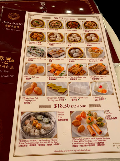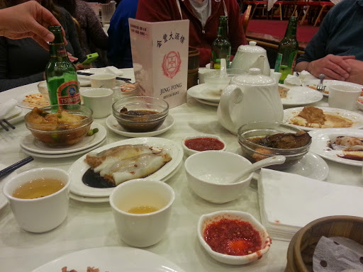 Im sorry the reviewer prior had such a terrible experience here. But to be honest, given my own experiences, those of my friends and others, as well as the 4-star/80-review reputation here, I think he may have missed the point. JING FONG is a dim sum restaurant. If we were talking a species of food service possibilities, "dim sum" would be the genus, with subspecies "push cart" and belonging to the race of "Palace". THIS IS NOT A DESTINATION "CHINESE RESTAURANT", (though YES, the do have a full Cantonese menu, just like Disney World is not a hot dog stand, but you can get a Goofy Dog at one of their snack bars) and youd do well to find something else among the gazillion possibilities mere feet away from Jing Fongs front door if thats truly what you want. Im certain many diners stumble in making the same mistaken assumption, for as Chinese Palaces go, you will find relatively few here in this neighborhood, and happening upon Jing Fong would be tantamount to picking Ceasars Palace on the Vegas strip, versus one of the more modest hole-in-the-wall gambling bars youd pass without so much as a glance. Here, you go for the Dim Sum and the Banquet; You cannot, at a dim sum palace, order a la carte entrees such as youve become accustomed to doing at a traditional Soup-Salad-Appetizer-Entree-Dessert restaurant. Stay on the main floor for that. Here, in the big hall, you must be prepared to settle in, enjoy a pot of tea, and watch as the circus of food unfolds before you. And to say that I get to the register with my "punch card" (which is how they keep track of what youve ordered and eaten) and almost laugh at how little they charge would not be an overly dramatic statement.