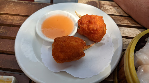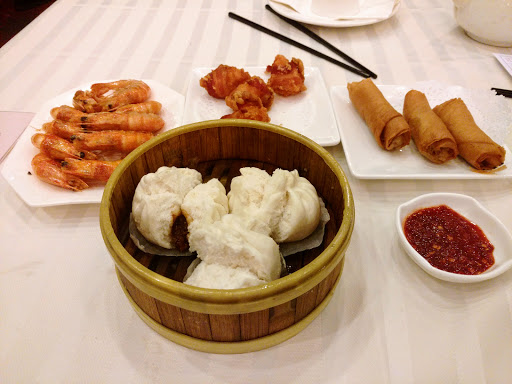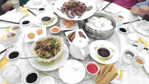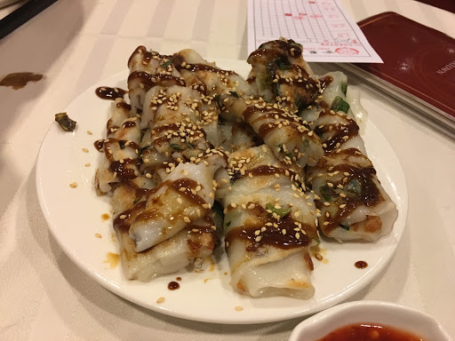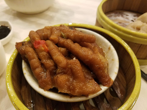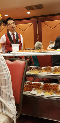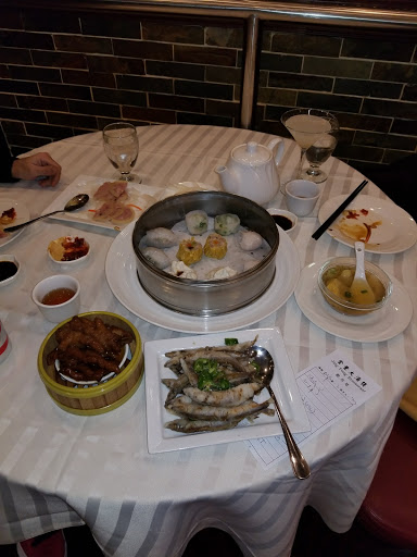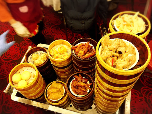Dim sum is a really nice way to try all sorts of dishes, finding out what you like and what you don’t like, at affordable price. The inside had a small lobby with hostess table. When it gets packed (which I heard this place gets completely packed all the time), I assume you give your name to a staff here. On the day we went, there was no wait, so we went right up the looooong escalator. About half way up, the mood of the restaurant starts to change, with huge, beautiful chandelier. Then there is this huge, enormous dining room, tables after tables. They have all sorts of tables, both in shape and size. Most of them are round table, small and large. We were quickly spotted by staff (there were few staffs on stand-by right at the top of escalator). They have walkie talkie to communicate in this large space, and the staff got on the walkie talkie to tell another staff who is in charge of seating people. She called us over and we hurried over to a large round table. It is all “shared” table, unless you are coming with large group of people. We were given a dim sum card as soon as we sat down, which is how they keep track of what you order. Don’t lose this one! What I really liked about this place is that they have these old-fashioned dim sum carts, pushed by female staff everywhere. Each one will be carrying something different, from dumpling, meat, tofu, baked goods, desserts… Just stop them and ask what they have, point to what you want, and they will put it on your table. Overall, we had a great dim sum experience here. We learned what we liked and what we didn’t like, in which I can say we liked most of what we tried. I would recommend to focus on the savory dim sum here, and not their dessert. Dim sum is a fun way to eat, and great way to share with family and friends. Read my full review of this restaurant and food on my food blog, foodlovergirl.