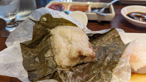 Committing to brunch at Jing Fong is committing to a strong current of people, sounds, and tastes. If youre new to dim sum, Jing Fong offers an amazing experience similar to what you might find in China. If youre old to dim sum, youve probably been here three times but you have two other places where you like the food better. **This review is primarily for someone new to dim sum. If you see the crowd with a few blond heads congregated outside the Elizabeth Street entrance, youve found the right place. Push through to the host stand, put in your name, happily accept the 20 minutes they quote you. Take the briefest moment to marvel at the huuuuuge escalator that will take you to your table and food in about 20 minutes. Now, be quick about it, continue the walk down Elizabeth Street until the street Ts. Just to the left, youll see Vivi Bubble Tea. Go order a small jasmine green tea with bubbles ($2 cash). Stick a fat straw in that sucker and suck er down. Feel happy. Get hype about the meal ahead of you. By the time you get back, it will probably be your turn, but dont expect anyone to tell you that. Let the host know, and insist to be next if theyve skipped your number. It will be no problem. OK, TIME TO EAT! Go up the looooong escalator. Get swept along the tide of waving and beckoning. Marvel at the sea of humanity and red decor. Sit alongside strangers. Receive tea. Ask for water. Let your hunger level and curiosity guide how many things you take from the very first cart that rushes to your table, but dont be afraid to say no and hold out for the better ones. The better ones: Sticky rice with chicken wrapped in banana leaf Steamed pork buns Fried taro with ground pork inside Radish cakes (although they were unusually shrimpy this past time) Shrimp in long rice noodle Huge ass plate of greens (you may have to go to the "buffet" to get them--dont forget your stamp card!) Egg custards The less good ones: Dumplings (pork especially) Sesame balls (you think theyll be good, but they arent) Chicken feet Tripe (not my thing) Havent tried: Clams That big pot of mushy tofu stuff scooped to order Pro tip: Drink lots of tea. It will keep you from overeating and it will speed along the metabolism process, if you know what I mean. Flip the lid to indicate that the pots empty, and youll get a new one pronto.