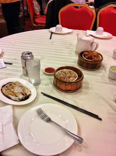 Went here for dim sum. I was quite surprised to see this place not packed on a weekend AND around 11 am. I guess people in NY dont do dim sum until lunch time. You would never see this in LA. Places would be packed by 10 am on a weekend. I havent been to other dim sum places in NY yet but the physical space is huge! It might be the biggest dim sum place in NY. I have a strong suspicion that many tourists go here. Ill review the food as a whole since I dont know how to write out all the names of the food since I only know them in chinese. Overall, food quality was edible. It is definitely sub-par when compared to LA. But for NY, its probably a-okay. Would I come back? Possibly, not probably (50% vs 75% respectively). But I want to try other dim sum places first. Service wasnt that bad. It is what you would expect at a chinese restaurant. You tell them how many people in your party, and they tell you to go to the person in the black jacket waving his/her hand in the opposite side of the room. We got our tea and glasses of water almost immediately. No complaints there. I asked one of the staff members that I was looking for these 2 particular dishes and she brought back one. I thought that was good. 50% is better than 0%. Only thing that was a little different here was you bring your own bill to the cashiers desk and you pay there. You dont pay at your table. The decor was nothing special. Just a lot of red and pink. Typical chinese restaurant. Only good thing was I didnt have a STRONG smell of the restaurant after we left!!