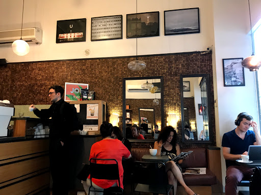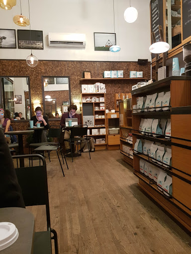 So happy that Columbia brought this place onto campus. It is a great space and has great coffee. There is definitely a hipster vibe from all the servers (lots of fedoras and vests), but all the patrons are students and professors. The space is big and feels nice. The only downside is that it is packed. When you are in a rush, they have a quick-coffee cart right at the stairs, which is excellent because there is usually a line at the main counter.