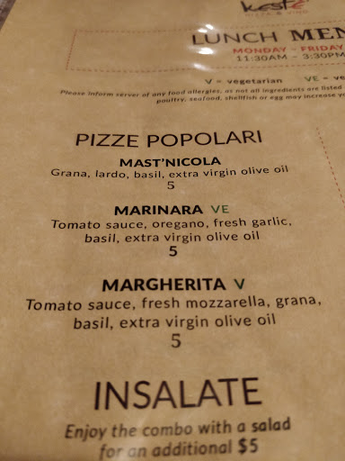 My wife, daughter and I went to the keste location on 66 gold st in the Wallstreet district and from the moment we walked in we felt as if we were like family. We were greeted as we entered by the hostess and the owner. That blew me away that the owner would be so humble as to get involved and welcome us with such warmth. We were seated right away by our waiter nicolai who was very friendly and proffesional. There was so much to choose from on the menu but nicolai asked us what wed to eat and he gabe us some recommendations that were suited for us. When the food came we were amazed at how beautiful the food looked. We were blown away with the taste of our selections. We had some wine, and one of there signiture drinks and everything was so perfect. I truly recommend this place to anyone looking for a touch of Italy . This place takes pride in their food and customers. A must for everyone to go to.
