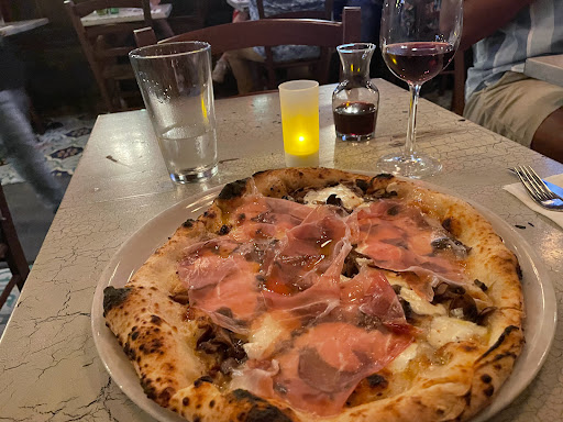 Great pizza, but one major complaint: unnecessarily snobby. Ive lived in NY for 8 years and been blessed enough to go to some wonderful restaurants, and I never mind a place that takes themselves seriously (its typically a sign of exacting quality). Further, my family operates one of the best artisan pizza places in the country; I know how the cornicione is meant to come out, the importance of balanced protein content in the flour, and the ideal timeline for fermentation for the dough. These pies are good, though Motorino is better. On the other hand, I also know youre not supposed to ask for pecorino Romano. I like it anyway, and have never had a problem asking for it, not even in Naples... Well, this place is the only that has ever refused to give me a side of it. Upon being surprised by this ultra-orthodox approach, I simply asked for salt (in order to dip my crusts in olive oil and a bit of salt). Again, the waiter refused, saying "they dont do that here". While I understand the merits of "educating" your customer base, Im requesting that the management become more lenient. I spent $22 on a pie that I didnt enjoy as much as I should have, and thats enough to keep me going to Motorino instead (Motorino is also better at giving their pizzas proper char). As a customer, if you can secede control over whether you are "allowed" to have a salt shaker, the pies are quite good.