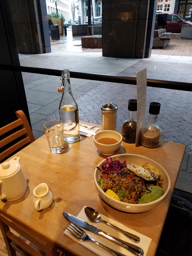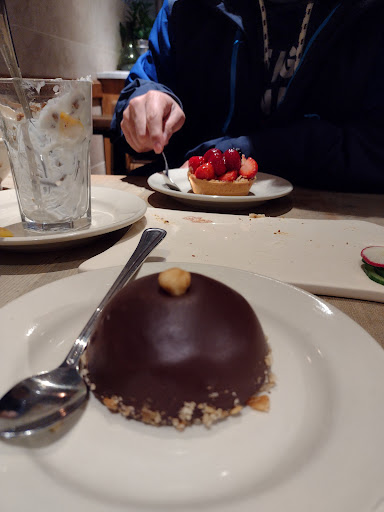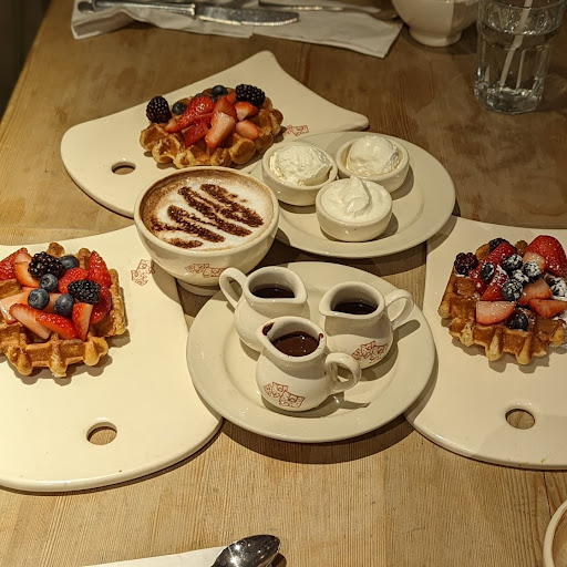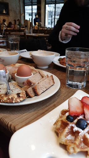 The quality of food served at this chain restaurant tends to be pretty consistent. Certainly of the ones Ive visited in NYC and London. This particular downtown location is very large and has outdoor seating. Which was where I sat for my 2 dessert lunch of lemon tart and a waffle. Both were good. The service was efficient and my waiter was nice too. Managed to finish my lunch very quickly and get back to my workplace without any problems.