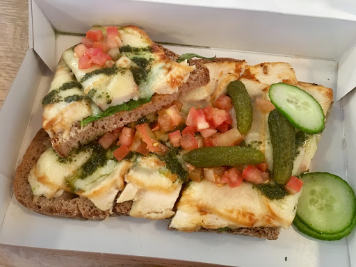 Food fine. Take-out staffed by a zombie. 10 minutes for baguette and butter;; no other customers. Server kept having to leave to ask someone else what to do. Knife, napkins, butter.. Its like nobody had ever asked for those items before.