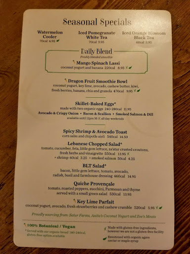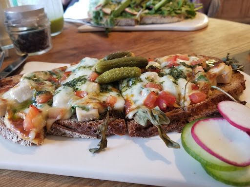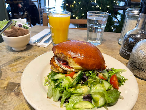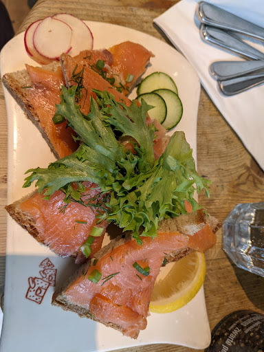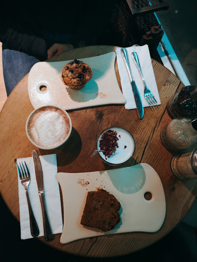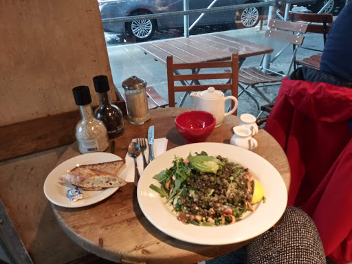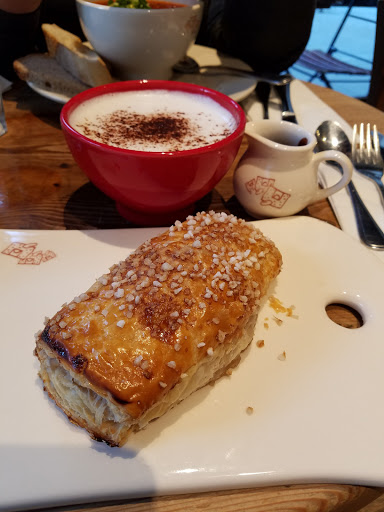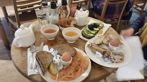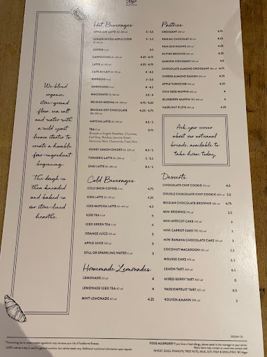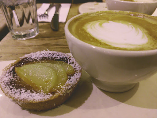 Beautiful atmosphere. Felt cozy amd quaint even though it was bustling and busy. The fresh flowers are a fantastic touch, with the hint of lilies mixing with the smells of the bakery wonderfully. The food looks awesome and my apple tart was fantastic, but the chai latte was watery. However the busy wait staff handled the high maintenance woman next to me with speed and grace I couldnt have mustered.
