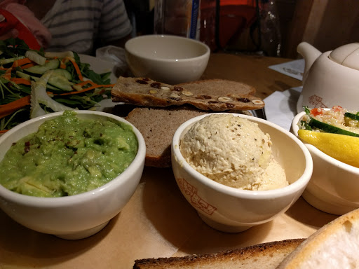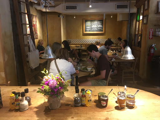 Out of all LPQ locations in New York City, my experience here was the best when it comes to the staff. Not a grain of rudeness or grumpiness which can found in this big chain restaurants. Very well organized and managed LPQ location. Seating wise, there are several communal tables and some great tables with the street view. Menu is usual LPQ stuff, so if you dig that youll know what to expect; organic food with many vegan/veggie options nicely prepared for enjoyment. I guess this goes for every LPQ, but if youre having sweets, ask for a jar of their creamy spread, you wont regret it. It comes in chocolate, hazelnut and white chocolate. Heavenly.