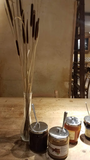 I dont like to sit at communal tables so have to wait for a table for 2 when I come for breakfast. There is no privacy and you cant really have a conversation. Coffee isnt so great which always surprises me. They dont serve omelettes so I eat a fritatta which is normally overcooked. But its pretty and the staff is nice