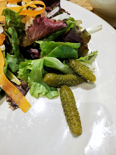 Ordered a so called "goat cheese salad" just because I was recommended by one of the staff guys to have it if I was really hungry, they are bigger portions, he stressed. The salad I received should be called arugula salad and not goat cheese, just two small pieces of goat cheese and a bunch of leaves that shouldnt even be called a meal. Overpriced and small portions.