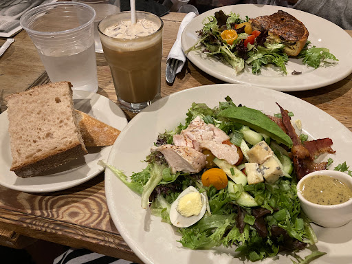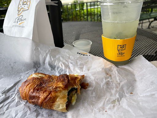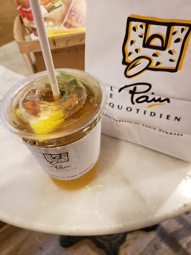 I love Le Pain for its WiFi, breads, desserts, coffee, hummus, veggies and atmosphere. The waiters are friendly and the location is amazing. Ive been to this Le Pain Quotidien several times and its always consistent. The only item on the menu I wasnt wild about is the spinach quiche, besides that I love it all.