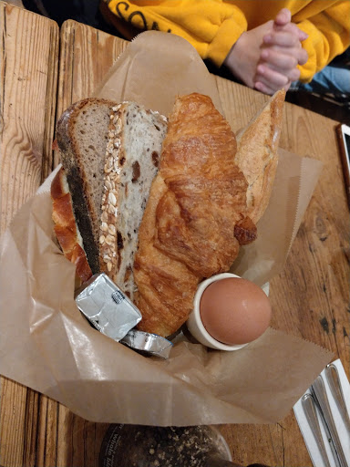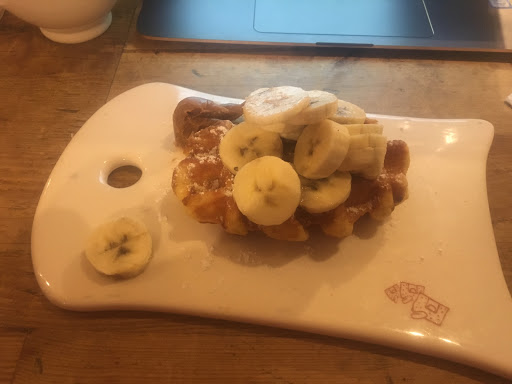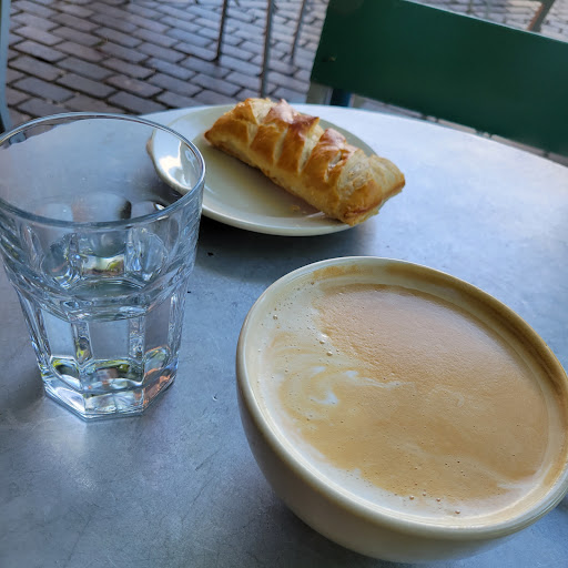 "Nice bakery with a large communal table" undersells this place. Thats true, but they also have plenty of tables for those who prefer. Most of all, the Belgian waffle was the single best piece of food Ive ever eaten. Life changing experience.