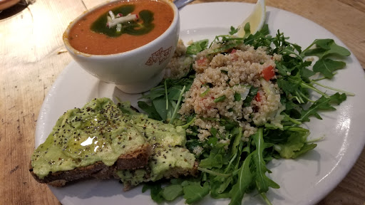 kind of confusing how to sit and order at first, because it is a community table. at least a little different from what im used to... but delicious, so delicious. love their mini muffins, especially the pistachio. very friendly, wonderful soups. often crowded however, and when looking for a quiet private breakfast before the hubhub of the workday, perhaps look elsewhere.... but otherwise, highly recommended.
