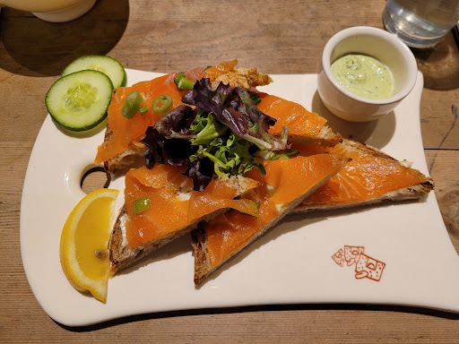 This is a nice cafe style place with lots of character. I stopped in and ordered the soup of the day (a delicious tomato soup) and a hot chocolate. The hot chocolate in particular was was very good, rich, and chocolatey (you are give a tiny pitcher filled with melted chocolate to add to drink - good idea). I hope to go again to try the rest of the menu.