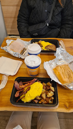 Love their breakfast before 11:30am and love the coffee. ~$7 for a loaded bagel and giant cofee. After midday the food is good for the price. Recommend the thanksgiving Turkey sandwich or pbj sandwiches. No WiFi here.
