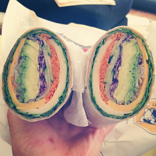Quick and easy sandwich standby for breakfast or lunch. The vegetarian wrap is really tasty.