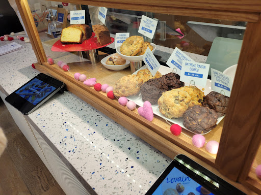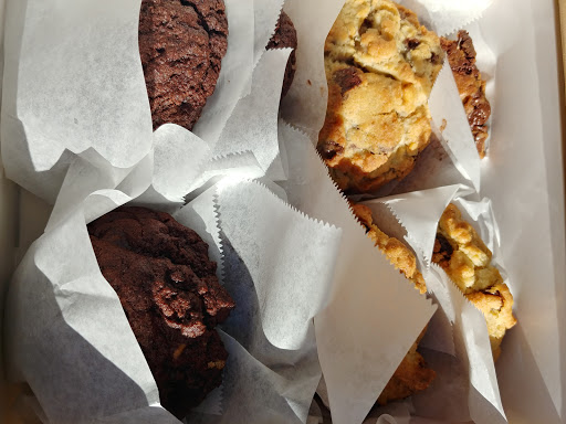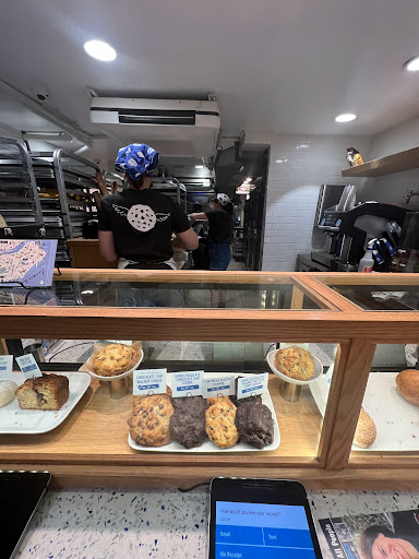 I ended up here about 20 minutes prior to them closing. There was a line of about 15 people out the door. I didnt mind waiting because the line moved pretty quickly. They have glass windows that give you a view inside to the small bar seating located at the front of the store. There are narrow stairs that lower you a few feet below into the bakery. The bakery itself has about a 5 customer capacity. Ordering is a little chaotic. They guy who took my order confirmed multiple times the amount of cookies I wanted and took an unusually long time placing them into a box for me. (Like 5 people were taken care of by the time i got my cookies and paid.) He seemed very confused. When I paid, he was counting on his fingers what the total amount would be. I had to help him out. After ordering, expect to squirm out awkwardly as you try to leave. This appears to be a normal thing there. These large, mouthwatering cookies are $4 each and can easily be shared without feeling like you didnt get enough. I ended up getting 2 of each: dark chocolate peanut butter, walnut chocolate chip, oatmeal raisin and dark chocolate chocolate chip. The cookies have a crisp outer texture and are complimented with a soft center. The chocolate is very rich in each cookie. I was impressed how much I enjoyed the peanut butter cookies because I normally dont like peanut butter. If you are on the west side, you should definitely find time to stop by this cheeky little spot.