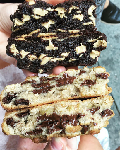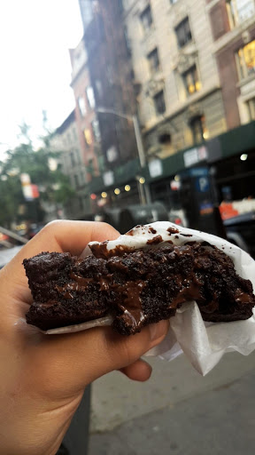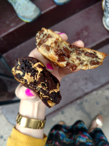 Al llegar había media cuadra de cola, decidimos esperar por las buenas referencias y al final no fue tanta la demora. El lugar está en un subsuelo y es muy chiquito, por eso tanta fila afuera, adentro hay una vitrina con muestras, nombre y precio de lo que se puede comer y detrás los hornos y varias personas trabajando. No hay demasiadas opciones para pedir y hay que hacerlo enseguida porque atienden rápido para que se renueve la gente. Todo se veía riquísimo. Elegimos las Dark Chocolate Chocolate Chip, 4 usd cada una, para ser cookies son bastante grandes, salen calentitas y las entregaron en una bolsa de papel con servilletas, así que apenas salimos las probamos. Parecían rellenas de Nutella o algo parecido con chips de chocolate, exquisitas. Si o si van a querer tomar agua luego. Es ideal para pasar por algo dulce después de comer hot dogs en Grays Papaya y seguir camino al Museo Americano de Historia Natural.