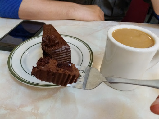 Coffee taste good and carrot cake. Chocolate layer not so much. A lot of deserts on menu not available so you are left craving what you cant have. Good service.