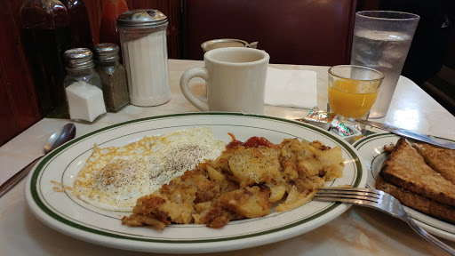 A classic old school diner where for 15 bucks with tax and tip you can get two eggs with corned beef hash, a side of toast and all the coffee you can drink. And you can do that whether youre going to bed at 5 AM or getting up at 5 AM.