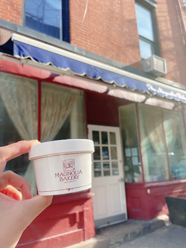 hhh, the stories Ive heard about Magnolia. "The line wraps around the street!" True. "People are totally obsessed!" True. "Theyre the best cupcakes youve ever had." FALSE. Dont get me wrong, I really liked the vanilla cupcake I had from Magnolia. Though the line wrapped around the block, we didnt wait for very long - 10 minutes, max, under scaffolding that shielded us from the elements. The cupcake security dude at the door monitored the volume of customers, letting a few people in every time an equal number exited. Very high security, that Magnolia. I was, however, surprised at the, well, BASICNESS (not a word, I know) of Magnolias product. I mean... they dont have flavors? They have vanilla & chocolate, topped with vanilla & chocolate? Only? I got a white-cake cupcake with light green vanilla icing and a little pink flower. It was super cute, very couture-looking, if you can describe cupcakes as such. It didnt look like an icing job I could have pulled off with my own baking skills (which arent very high-level, I admit). I was expecting a ton of ridiculous, wacky, creative flavors executed flawlessly - instead, I got $2.50s worth of a Betty Crocker blue ribbon-winner. Oh, yeah, and the lemonade I got was refreshing and also fairly inexpensive. That said, my whole Magnolia experience was only $5.00, and the staff at Magnolia is friendly, engaging and helpful, not too hassled or harried. It was worth it if only for the experience of visiting the most talked about cupcakerie in NYC, but I cant say Im in a massive hurry to go back.