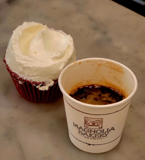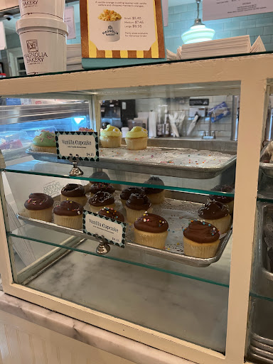 So sorry I dont agree with all the hype surrounding Magnolias Bakery we simply werent impressed. I think the frosting is heavy on the sugar and not light dreamy and creamy like butter cream frosting should be but thats Magnolias claim to fame. The cupcakes were soft and fresh inside but when I have a bakery cupcake I want all of it to be right, I love butter cream frosting and it is the highlight of any cupcake or cake for me so Magnolias is just a three in my tastebuds opinion but if you must go expect long lines here and higher than average prices for just average cupcakes.