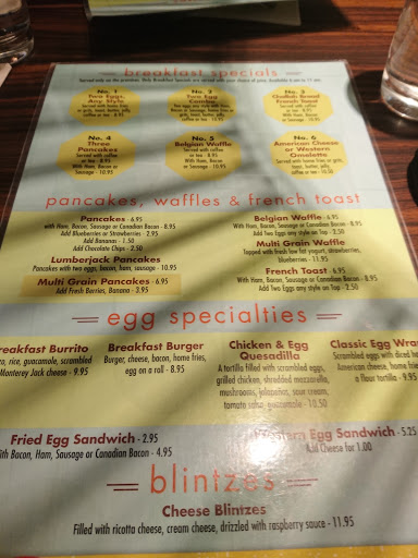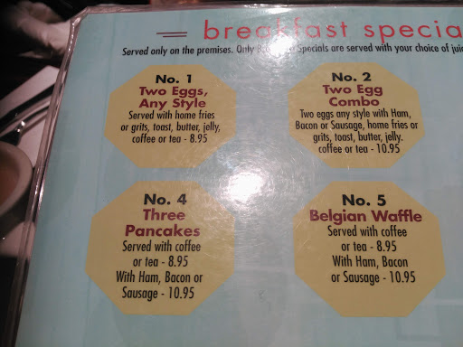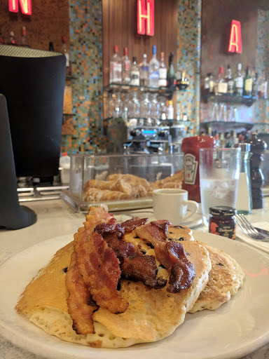 Ho fatto colazione spesso in questo diner, poiché alloggiavo in un hotel nello stesso edificio. Il posto è carino e "vecchio stile". Il cibo della colazione è molto buono, in particolare i pancakes. Conviene prendere uno degli specials della colazione (delle combinazioni predefinite che comprendono anche caffè o the) altrimenti il prezzo diventa molto alto. Servizio ok, anche se qualche cameriere è un po sbrigativo.