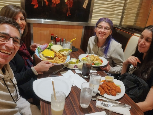 I always come here for lunch on Sundays. It is a crazy busy place at that time. Somehow they always get us a table within 5 to 10 minutes. The menu here is very extensive. You can come for dessert, a snack or a 4 course meal. The wait staff is fast and the food is served quickly and the portions are large. But it is diner food. Families, little kids, teenagers and every age group is represented here on Sunday and the noise level is high. Also, they could use 2 more restrooms when its that busy.
