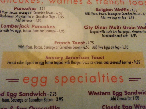typical diner yes but there are other diners popping up with better food. the fruit salad is never fresh and those pastries laying around, even worse. I dont like the idea that I have to pay extra for substitution. this is formerly called key west diner so I had a word with management about the prices going up and they blamed it on the renovation. ok, but the food is still crappy. one more thing, several times I was overcharged when they were key west and now. I use to over look it until I thought, if I did not have enough money to pay for this meal I know for a fact that they would not let me get the meal anyway. its like what those bodegas do. they dont want to give you back the change and then they question me about how rich or poor am I to be asking for the change. besides im sure they overcharge other customer times whatever and that is more money in their pockets again for stale food. I think its time to find another diner or go to the grocery.