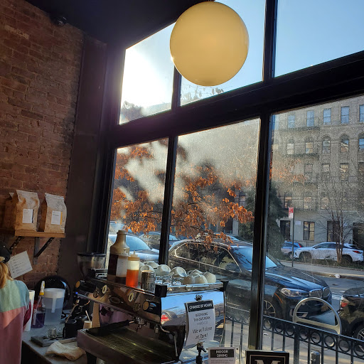 What an amazing local coffee shop. I love Starbucks but I love to gra I dropped in one day because I am always passing this establishment on my way to Riverside. They have tall windows which allow for the maximum amount of lighting possible and plenty of outlets, couches, and a large community table. I ordered a Mocha while I sat and did my work. It tasted amazing and it wasnt too sweet or too strong. They have a wide assortment of sweets as well to select from. The staff was helpful and kind as well. Of course their is free wifi at this location which is always perk. This will quickly become a new favorite since it is only 2 blocks from my house. Thanks Manhattanville Coffee for a great first impression.