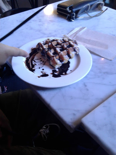 Found this place on Yelp. First impressions as soon as you walk in? Yes yes yes! Absolutely amazing décor. Exposed brick wall, couches, wood furniture, communal table. The baristas were very friendly in recommending me a drink and something to eat. Got an Iced Mocha. Was served in an actual glass, which was pretty awesome. The tables have little pencils on them, which have the name of the coffee shop on them - thumbs up. People here were studying, chatting, one brought their baby. Free WiFi, good service, good food, definitely coming back.